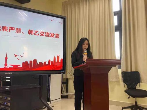 之后,学院学习强国积分第一名于文华老师、深入指导帮助党员、入党积极分子开展学习的党员发展联系人赵磊老师、学习强国工作推进先进代表日语系支部书记杨晓兴老师和两位优秀学生代表严慧、韩乙同学,分享了自己学习中的感悟和方法。作为学院学习标杆,于文华老师引经据典,并从教学工作实际出发,提出了“学习强国”学习对于高校教师开展教学的重要性,建议党员教师积极了解时事政治,将党的思想融入教育,推动学生全面发展。同时她提出,学习强国内含着聚合了大量古籍、公开课、电影和图书等文学生活资料,使用“学习强国”不仅能及时掌握最新时政动态,提升个人理论素养,还能开阔视野,掌握知识,提升自身综合素质,将继续用好学习强国平台,不断提高自身政治素质和文化素养,她的精彩发言也得到了与会党员同志深深地认同。