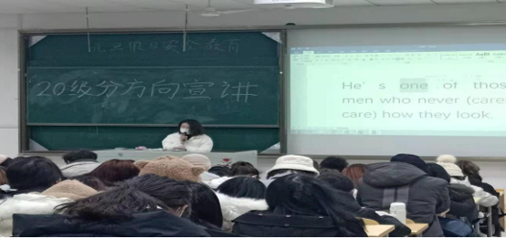 会议伊始,张丽娟主任向同学们讲解了分方向的重要性。接下来副系主任林安洪向同学们分析了英语教育与英语商务的情况。