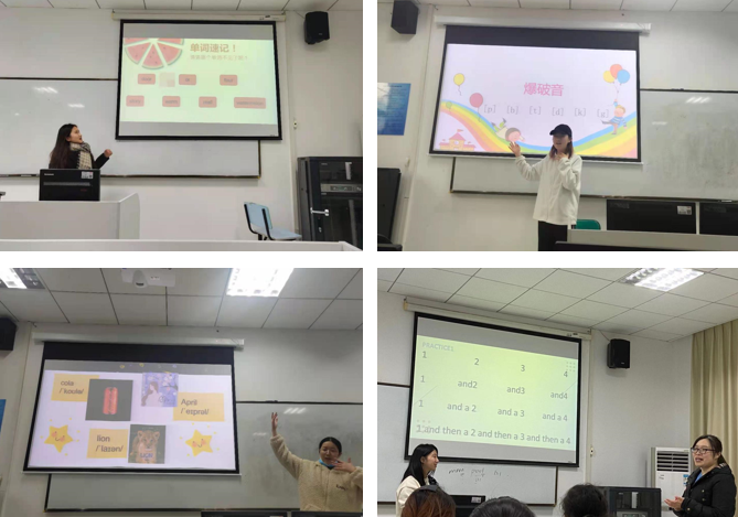 在10月份的教案撰写的集中培训活动之后,志愿者同学们花费两个月的时间精心设计教案和课件,并在胡老师的指导下进行了修改和完善。为了使志愿者同学能够在实际课堂中展现出最好的教学状态,胡老师又特意安排了此次试讲活动。试讲活动现场,首先由各小组分别派出代表来展示自己团队设计的英语配音课。每组同学的试讲都有其别出心裁之处,志愿者同学采用了视听结合、游戏交互等方式,使自己的课堂趣味十足、精彩纷呈。试讲结束后,小组之间互评互议,这种方式不仅能让各小组反思自己的课堂,还能相互汲取长处。此外,胡雪梅老师在试讲过程中不时穿插一些指导和建议,及时指出志愿者同学需要注意和改进的地方,使志愿者同学受益匪浅。