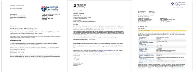 两年后,毕诗晨重返校园,曾经的同学变成了师兄师姐,都在忙着写论文、找工作,刚回校园的毕诗晨坦言当时略有不适应,但凭借着在军营中磨练出有计划、执行力强、意志坚定的作风,她很快赶上课程进度,并在大三决定出国和考研两手准备。最终,毕诗晨陆续收获了纽卡斯尔大学、约克大学、悉尼大学、莫纳什大学和利兹大学等7所世界知名大学的Offer,并在今年4月顺利通过北京外国语大学研究生复试,成为大家眼中“妥妥的学霸”。
