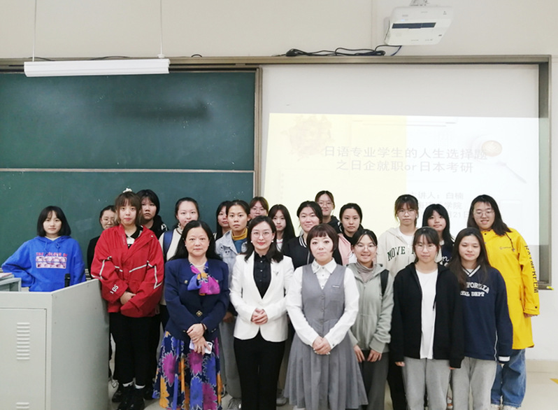 据悉,“职业生涯规划”系列讲座,是外国语学院日语系《应用型日语本科试点专业》改革项目中“三实”教学板块(社会实践、专业实训、就业实习)的重要分支体系之一。此项活动不仅对日语专业学生的职业规划及就业导向提供了可行性指导,同时也提升了日语系学生对本专业的认知与理解,为进一步构建日语专业的“J+a”复合型人才培养模式起到了引领和驱动的作用。
