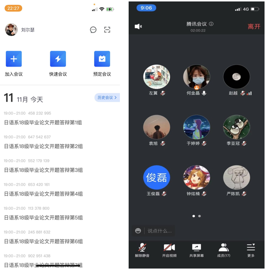 2021年11月11日(周四)晚19:00,外国语学院日语系18级本科毕业论文开题答辩通过腾讯会议线上形式顺利举行,日语系126名18级毕业生参加了本次开题答辩。为了提高论文指导与答辩质量,有效深入应用型本科日语专业的建设,日语系合理运用校外资源,有幸邀请到上海财经大学、上海海事大学、上海海洋大学、上海杉达学院等骨干教师及专家参加了本次开题答辩。答辩组分9个小组同时进行,每个答辩小组由3位教师组成(其中包含1名组长、2名成员),共计27名答辩教师。