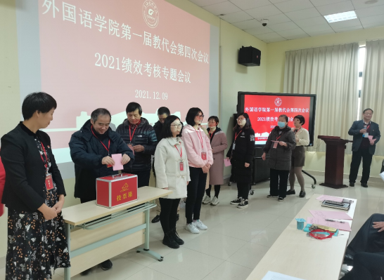 接着,教代表们通过无记名投票的形式,通过了《外国语学院2021年教职工绩效奖金考核细则实施方案》。