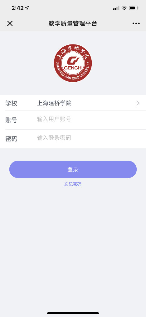 2、关注公众号后,进入首页,输入学校全称,绑定账户,账号为学号,初始密码为111111,即可登录。