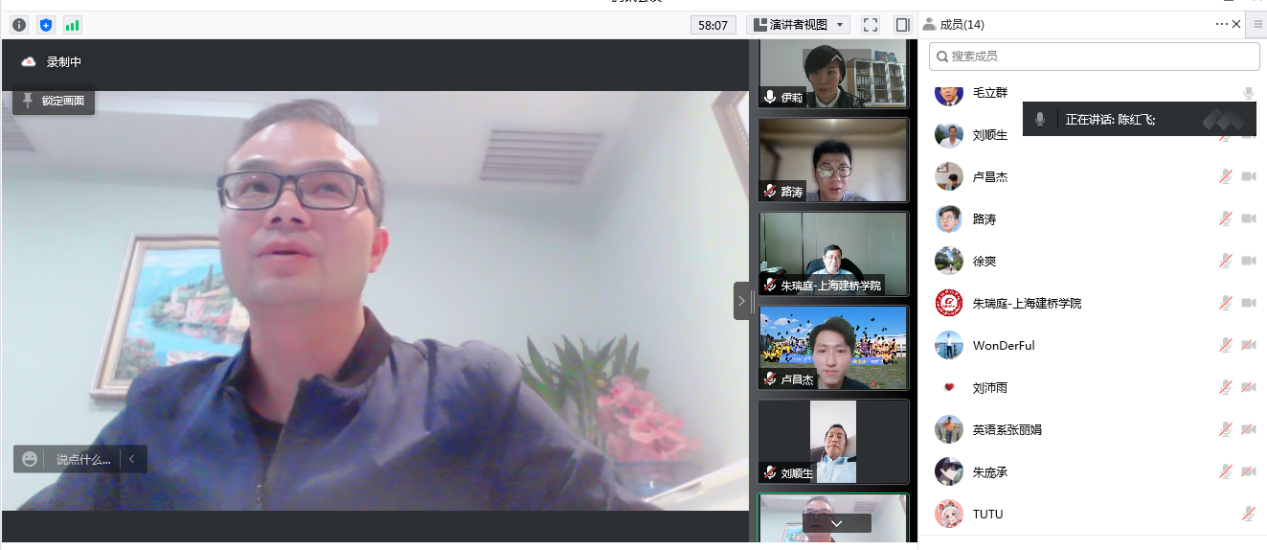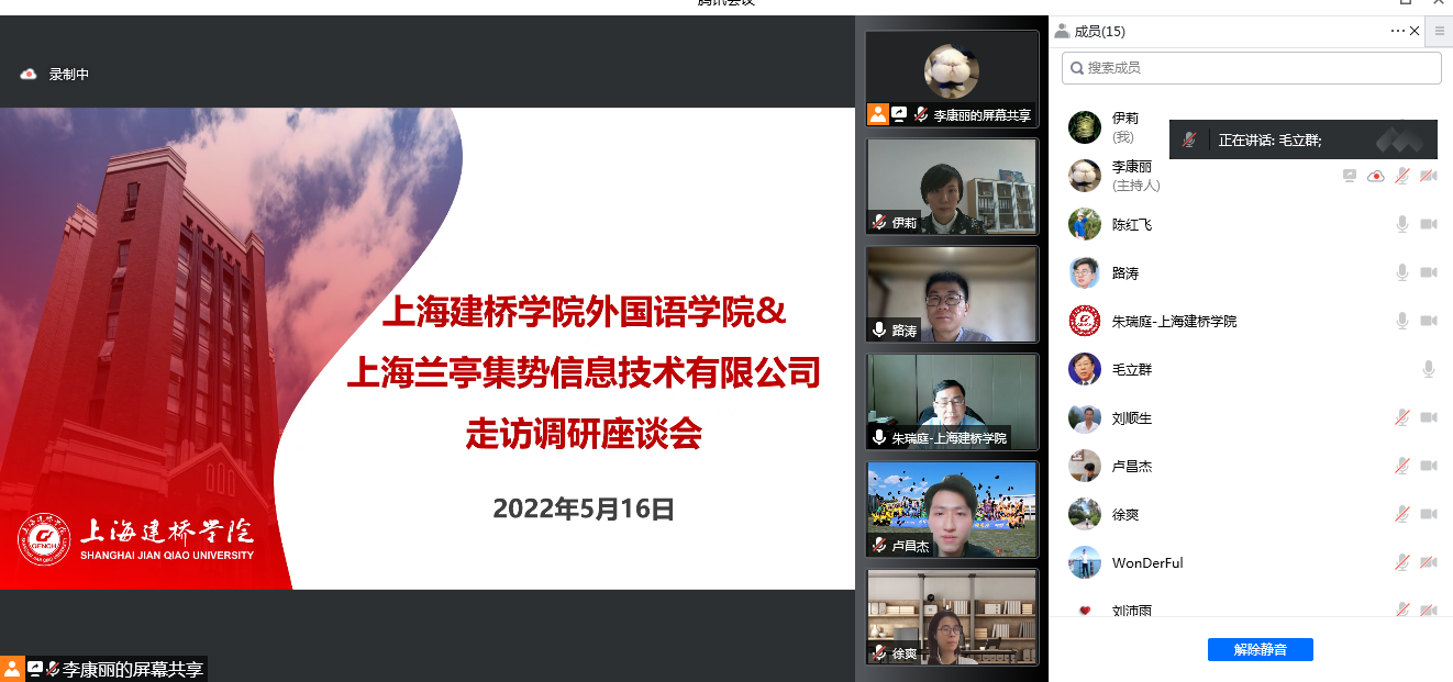 为深化校企合作,充分发挥校院两级领导带头做好毕业生就业工作的重要示范作用,带动学院全员深度参与毕业生就业工作,5月16日下午,校长朱瑞庭,外国语学院院长毛立群、党委副书记伊莉,兰亭集势公司人力资源副总陈红飞、总监路涛、客服总监姚玥旻、校招主管卢昌杰,以及外国语学院各系主任、毕业班辅导员和学生代表参加线上会议,会议由伊莉主持。