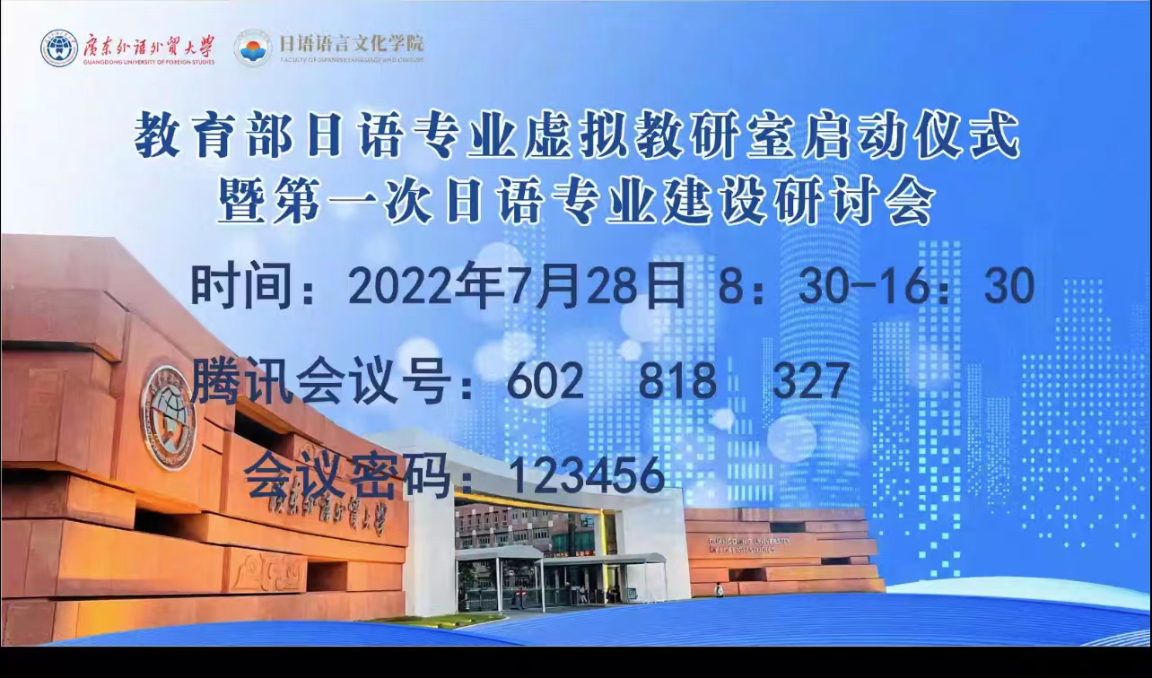 2022年7月28日(周四),由教育部高等学校外国语言文学类专业教学指导委员会日语专业分委员会、中国日语教学研究会指导、广东外语外贸大学日语语言文化学院主办的“教育部日语专业虚拟教研室启动仪式暨第一次日语专业建设研讨会”在腾讯会议上举行。上海建桥学院外国语学院日语系主任刘尔瑟参加本次会议,对10多位全国著名高校日语教育专家的示范课程以及讲演进行了观摩学习。