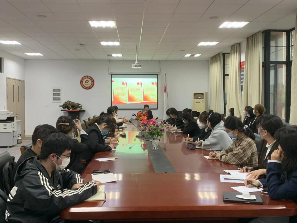 为深入学习贯彻党的二十大精神和《习近平谈治国理政第四卷》重要精神,2022年10月26日16:20,外国语学院第一学生党支部在外院229召开组织生活会,会议由党支部书记赵磊老师主持,外国语学院党委副书记伊莉老师、组织委员彭艳虹老师、宣传委员方毓锦老师参会。