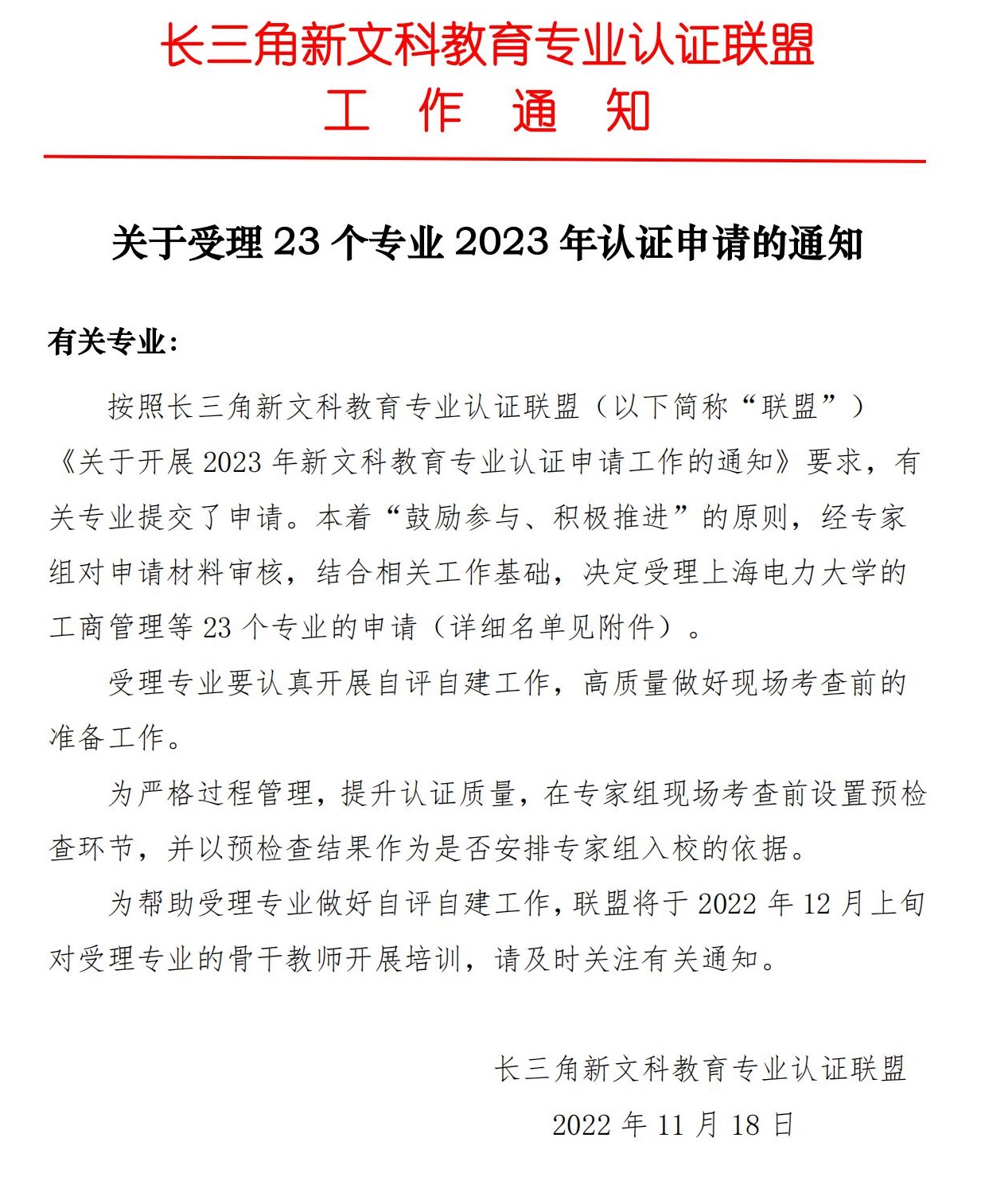 近日,长三角新文科教育专业认证联盟公布了《关于受理23个专业2023年认证申请的通知》,我校外国语学院日语专业获批受理2023年新文科教育专业认证申请。