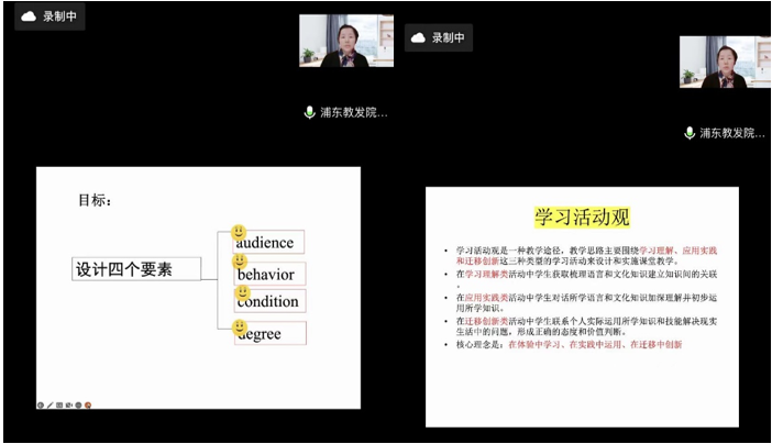 为了进一步提升英语教育方向学生的教育教学能力,并且基于外国语学院的办学特色,把专家请进课堂是教育模式的至关重要的一环。我们在2022128日下午130腾讯会议138 494 886线上开展了专题讲座,特别荣幸邀请到浦东教育发展研究院初中英语教研员王瑛老师,讲座的主题是关于“基于目标导向下的初中英语学习活动设计”,英语系20级英语教育方向五个班共220学生聆听了本次讲座。