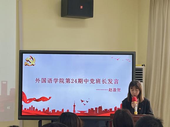 2023年3月31日,外国语学院第24期入党积极分子中级党校培训班开班仪式在外院129顺利召开。出席本次开班仪式的有学院党委副书记伊莉、学生党支部书记赵磊、尹洁,入党积极分子培养联系人张三月、易贤恒、孟娣,外国语学院雷锋金质奖章获得者王雨诺以及第24期入党积极分子培训班的全体学员。本次会议由党委组织委员刘沛雨主持。