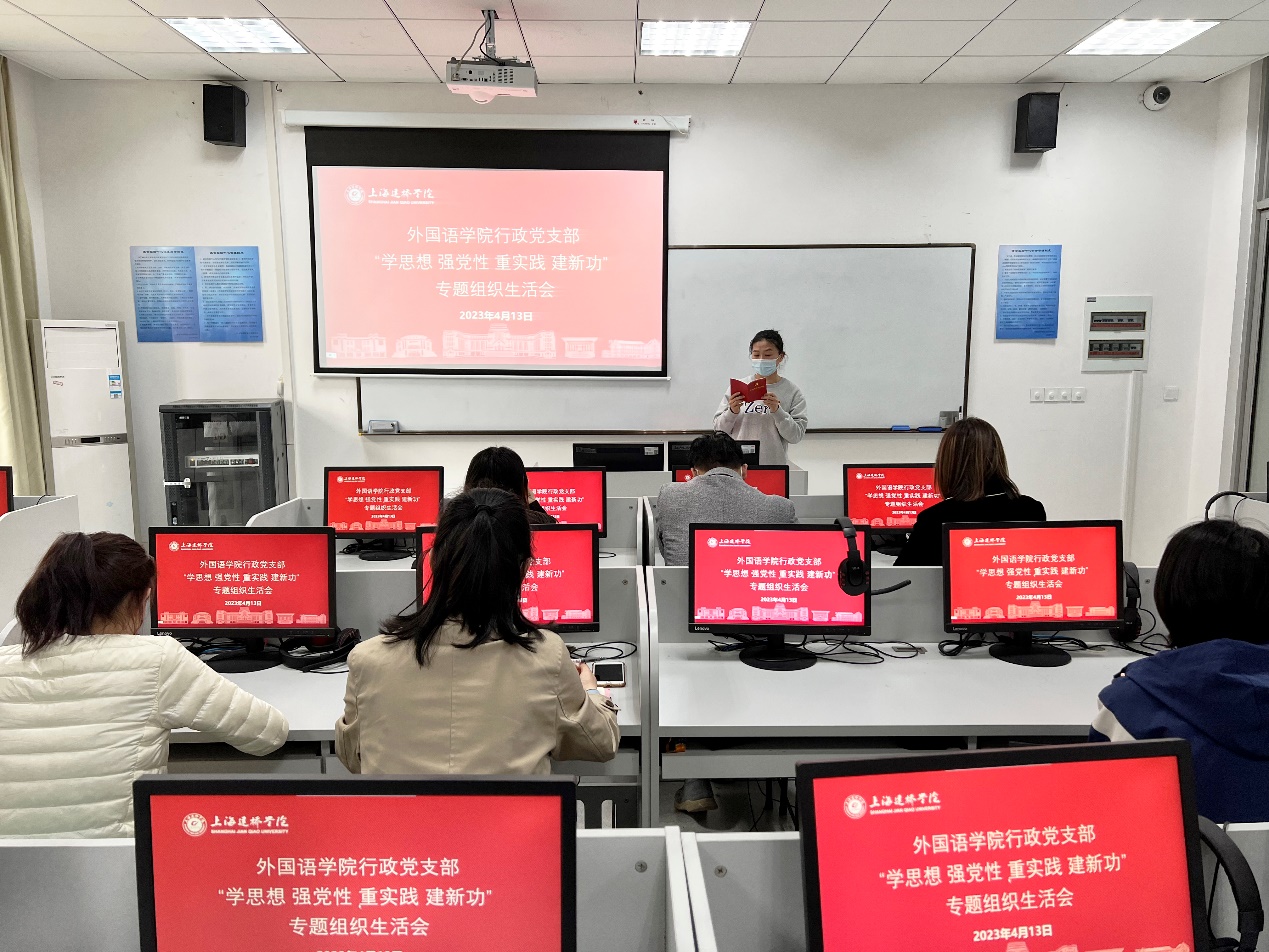 413日下午,外国语学院行政党支部在324召开“学思想,强党性,重实践,建新功”专题组织生活会。会议由支部书记陆璐主持,行政党支部全体党员参加会议。