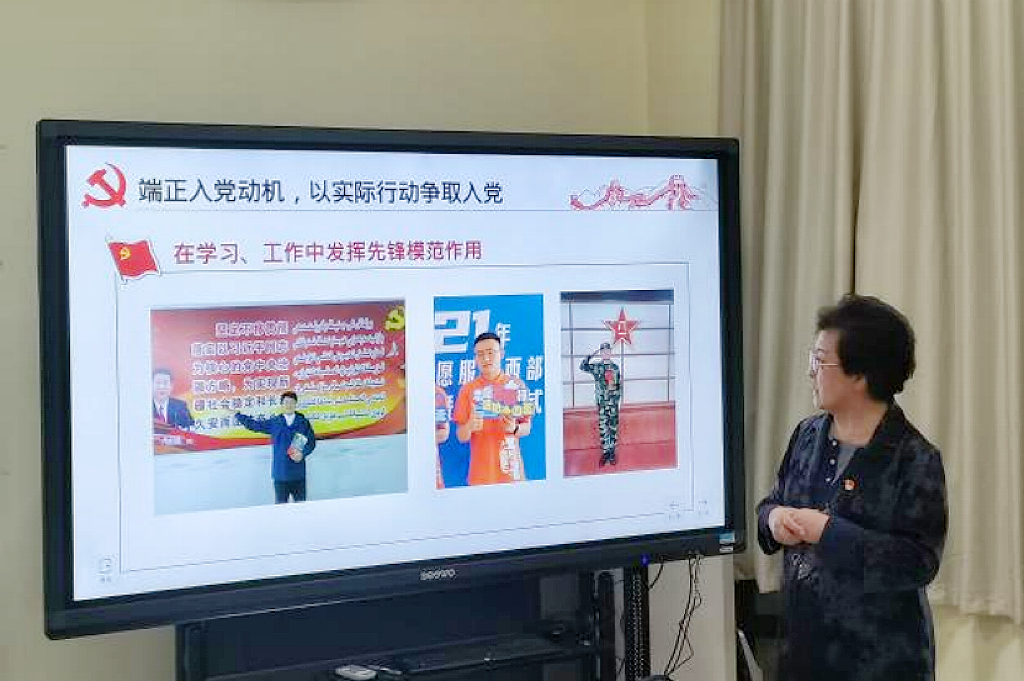 章老师从“青年兴则国家兴,青年强则国家强”、“请党放心,强国有我”、“端正入党动机,以实际行动加入中国共产党”三方面为学员们进行了讲解。