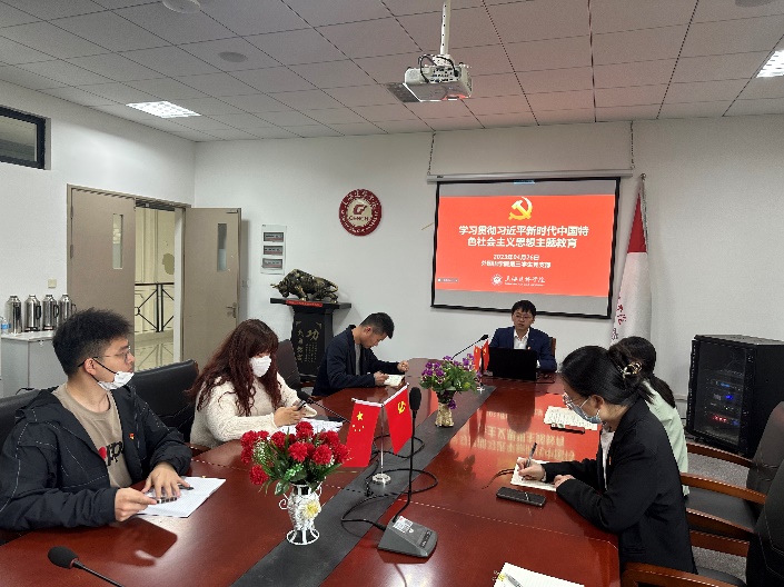 最后,各位党员也分享了自己的学习感悟,朱心怡谈到,作为一名党员,要抓好个人学习,将“学思想,强党性,重实践,建新功”的总要求落到实处。作为一名青年教师党员,要紧扣立德树人根本任务,坚持用习近平新时代中国特色社会主义思想武装头脑,指导工作,深刻领会“六个必须坚持”的内涵,并将其融入思政教育中,为培养堪当民族复兴重任的时代新人贡献力量。易贤恒谈到,通过学习,加深了对主题教育的认识,对党的二十大擘画的宏伟蓝图以及部署的根本任务,有了更加深刻的理解,进一步坚定了理想信念,对自己的工作目标和职业态度也有了更高的要求。张三月表示,作为党员教师,要坚持用习近平新时代中国特色社会主义思想凝心铸魂,在常学常新中加强理论修养、在真学真信中坚定理想信念、在学思践悟中牢记初心使命,不断增强政治信念的坚定性、政治立场的原则性、政治鉴别的敏锐性、政治忠诚的可靠性,切实担负起教书育人的重要职责,激励青年学生争做堪当民族复兴重任的时代新人,在实现中华民族伟大复兴的时代洪流中踔厉奋发、勇毅前进。