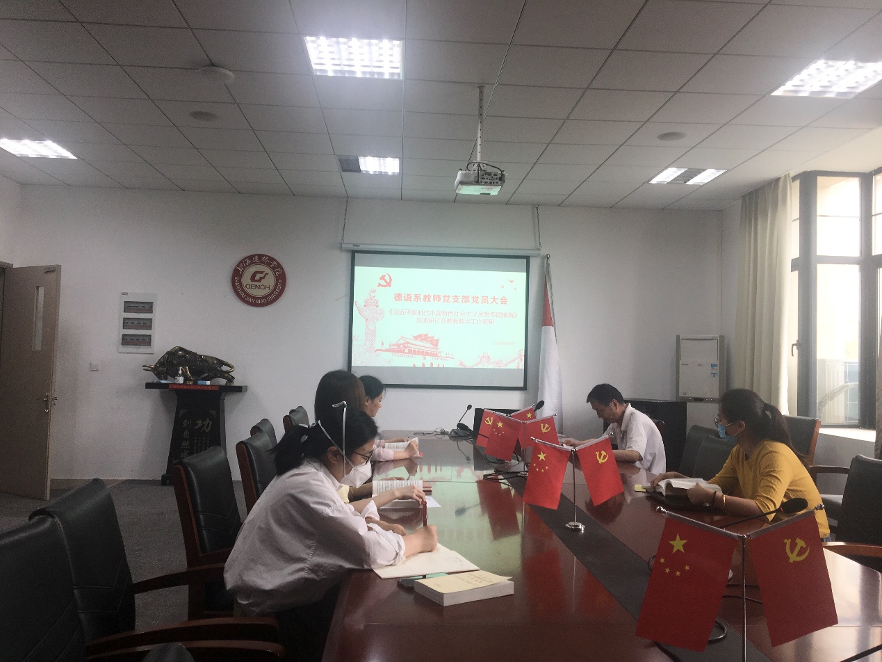 为深入学习贯彻习近平新时代中国特色社会主义思想,把握主题教育“学思想、强党性、重实践、建新功”的总要求,更好地用习近平新时代中国特色社会主义思想武装头脑、指导教育教学实践、推动德语系工作高质量发展,德语系教师党支部于6月6日下午两点半在外国语229室召开支部大会,会议由党支部书记刘顺生主持,全体支部党员参加了本次会议。