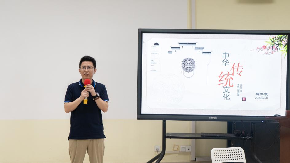 随后,葛院长从中国传统文化的介绍、传统文化的重要载体——传统节日、学习传统文化的意义、如何弘扬中国传统文化进行了授课,四个方面进行了展开论述。