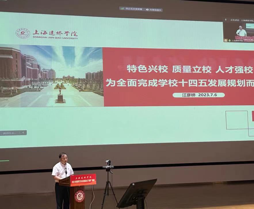 76日上午,为深入学习贯彻习近平新时代中国特色社会主义思想,坚持主题教育与推动学院高质量发展相结合,我校召开了全校教职工大会。江彦桥书记发表《特色兴校,质量立校,人才强校-为全面实现学校十四五发展规划而努力奋斗》的主题报告,主题报告牢牢把握主题教育“学思想、强党性、重实践、建新功”的总要求,提出了“特色兴校,质量立校,人才强校“的具体方针,呼吁每一位建桥老师为全面实现学校十四五发展规划而努力奋斗。