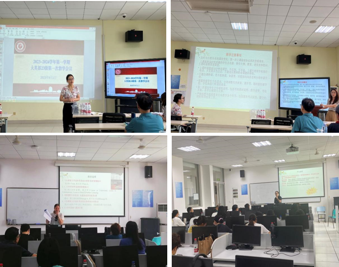 大会过后,22级和23级教学团队分别召开各年级组教学工作会议,23级教学团队由陈银春副主任主持,22级教学团队由傅荣琳副主任主持,两个年级的课程组长桂瑞思和刘忠杰老师分别从教学团队,教学注意事项,竞赛类别,教材说明,教学设计思路、教学进度、考核方案、平台使用进行详细讲解。
