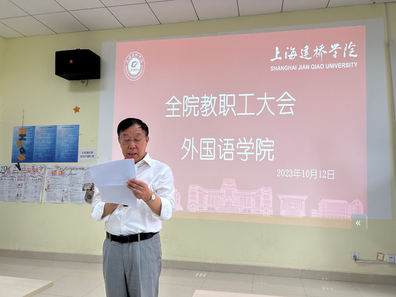 10月12日下午,外国语学院在129会议室召开全院教职工大会暨师德师风建设工作专题动员会,党委书记杜鹃、副院长王海燕、副书记伊莉、各系室主任、党支部书记和全体教职工参加了会议,会议由院长毛立群主持。
