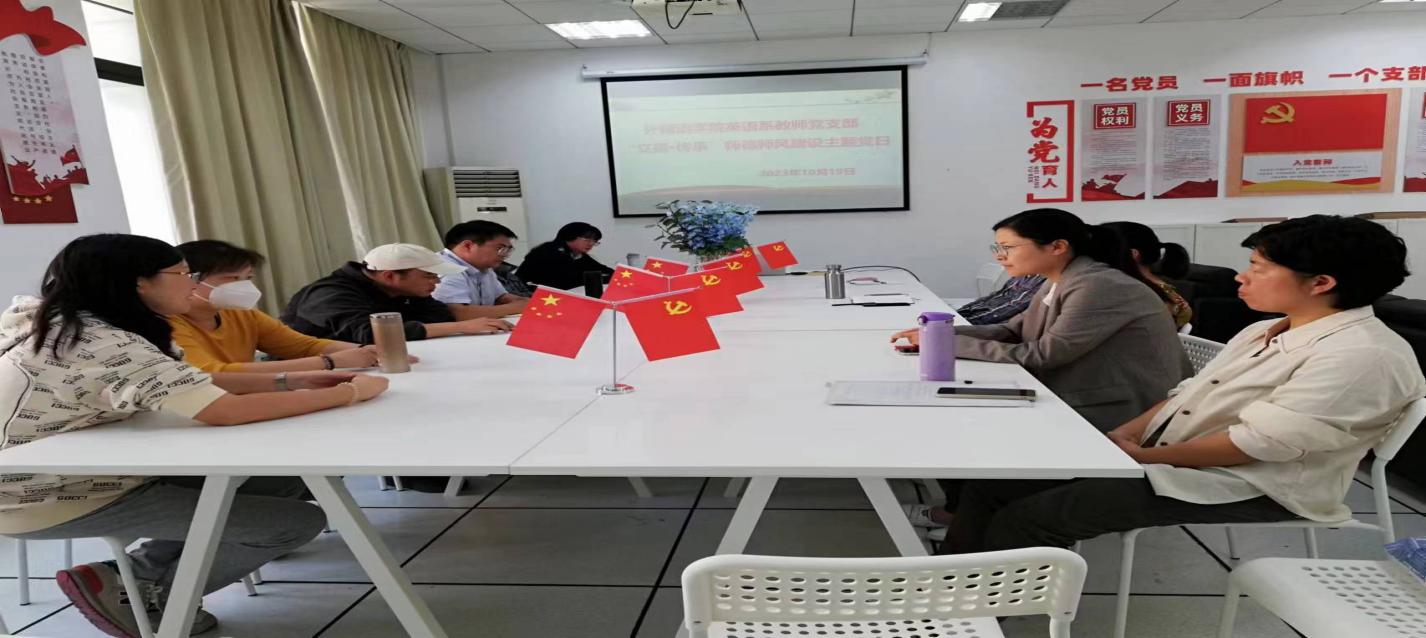 按照学校及学院党委安排部署,10月19日下午1点英语系教师党支部在外语楼303室召开“立德·传承”师德师风建设主题党日活动。活动由支部书记王君兰老师主持,支部全体教师参加。