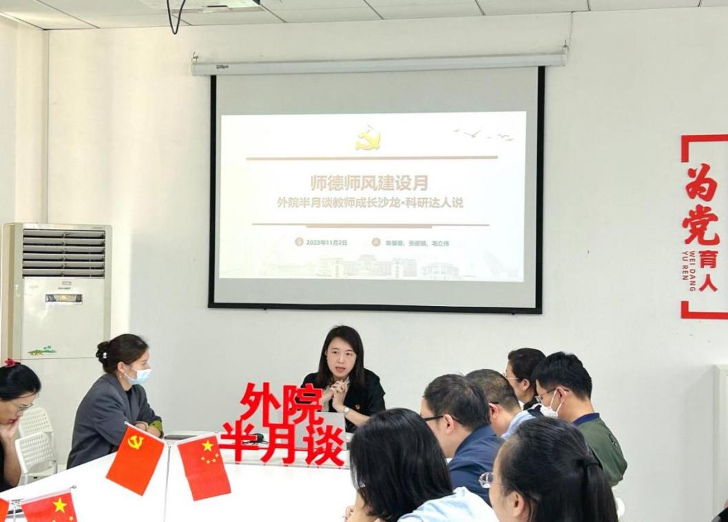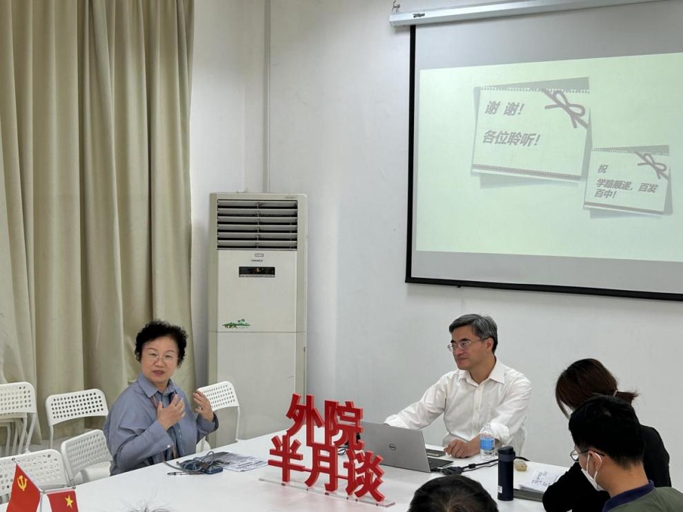 会议伊始,杜鹃书记向与会教师说明了学院打造“外院半月谈教师成长沙龙”的原因,旨在为青年教师打造一个增进交流、凝聚智慧、促进发展的平台,让青年教师在榜样引领、同伴互助、个体反思实践中实现专业成长和职业发展。