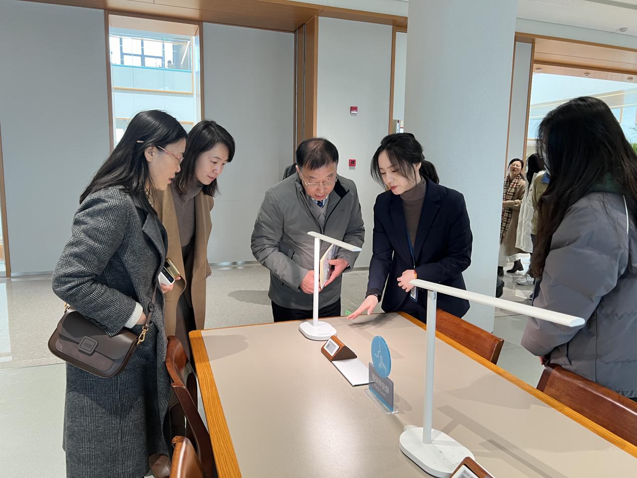 随后,上外贤达外语学院副院长赵顺花陪同我院一行人参观了贤达校园、学生教室、国际交流会议室及图书馆,并从学校文化建设、课程体系构建、主题实践活动、行政管理等方面为大家进行了详细介绍。