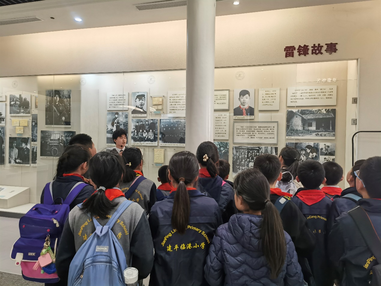 为深入学习贯彻党的二十大精神,落实立德树人根本任务,发挥思政课铸魂育人功能,推进大中小学思政一体化建设,12月8日下午,外国语学院行政党支部与上海建平临港小学茉莉校区五(6)班雏鹰小队开展结对共建活动,以校红色场馆雷锋馆为载体共同推进思政教育建设。本次活动由支部书记陆璐主持,日语系副主任周杨、支部成员王林、徐亚男以及大学生志愿者李苓浛、刘桃、曹美钰、潘香、周雨桐五名同学参与此次活动。