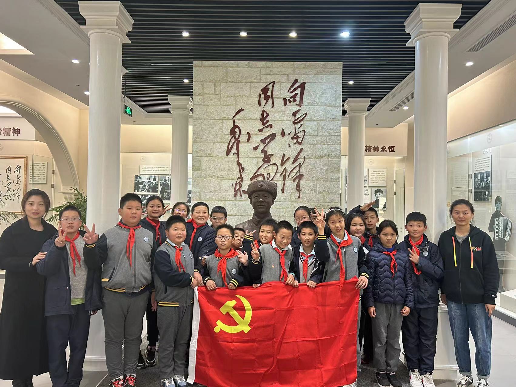 到达上海建桥学院,支部书记陆璐带领大家来到校雷锋像前并作欢迎致辞,希望小雏鹰们在实践活动中利用好红色资源,向雷锋学习,凝聚榜样力量,争做时代好少年,努力成长为德智体美劳全面发展的社会主义建设者和接班人。