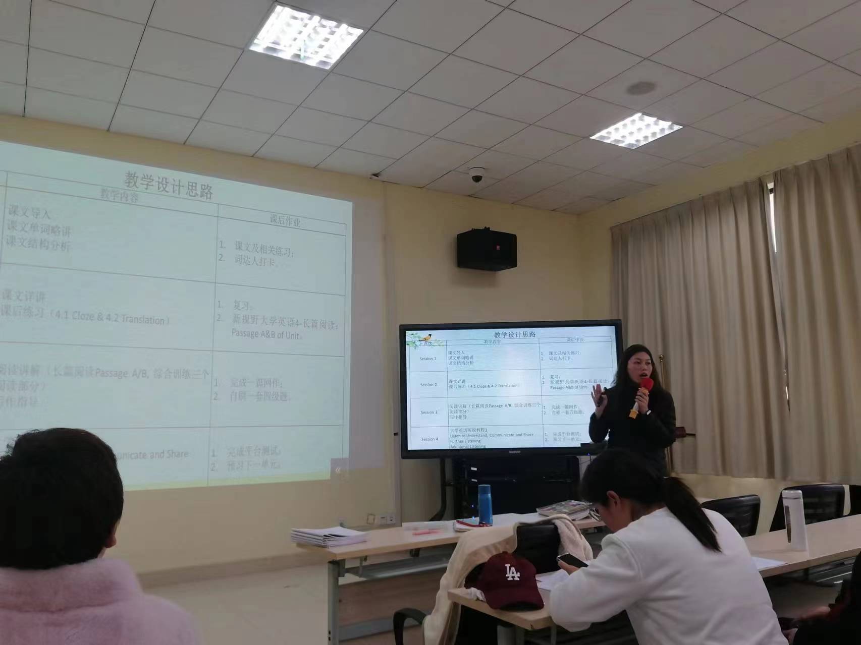 接着,孔主任向与会老师介绍了大英部的组织架构;随后,她从四方面对上个学期的工作进行了回顾和总结,包括期末考试情况,2023年12月CET-4考试情况,师、生比赛获奖以及寒假的工作;接下来,第五届“我心中的好老师”王颖老师、兼职奖教金二等奖获得者岑莉老师以及学生评教分数较高的李博老师就如何提高学生学习积极性和效果分享了经验和心得;最后,孔主任对新学期的工作进行了部署,要求围绕“2024年6月CET-4考试”这个中心,狠抓第一课堂、考核第二课堂、有序推进竞赛活动。