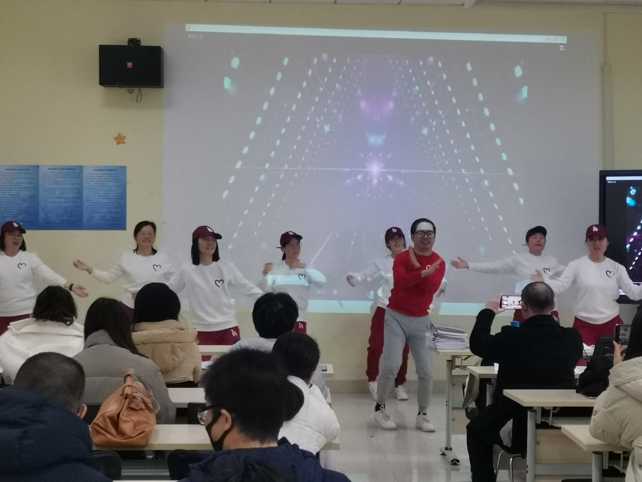 会议围绕部门介绍、工作回顾、经验交流和工作部署四个模块展开。在欢快的音乐声中,刘忠杰等8位教师跳起了《科目三》,也拉开了会议的序幕。