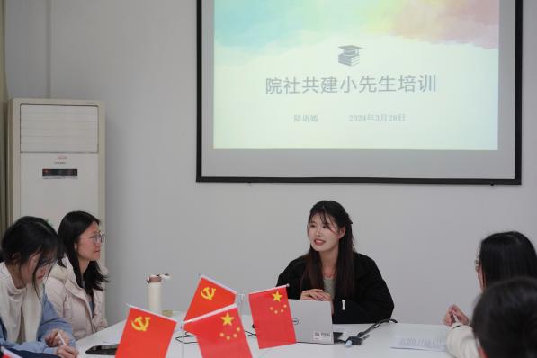 为深入学习贯彻习近平新时代中国特色社会主义思想,深入推进学校、社区协同育人,进一步深化“院社共建”的实践育人理念,外国语学院于2024年3月28日下午在外院303举办了以“学思想创青春,助力社区发展”为主题的“小先生”招募面试活动。出席本次活动的有:外国语学院党委组织员刘沛雨、英语系指导教师王嘉怡、第二期“院社共建活动”组长杨薏雯、陆语嫣。