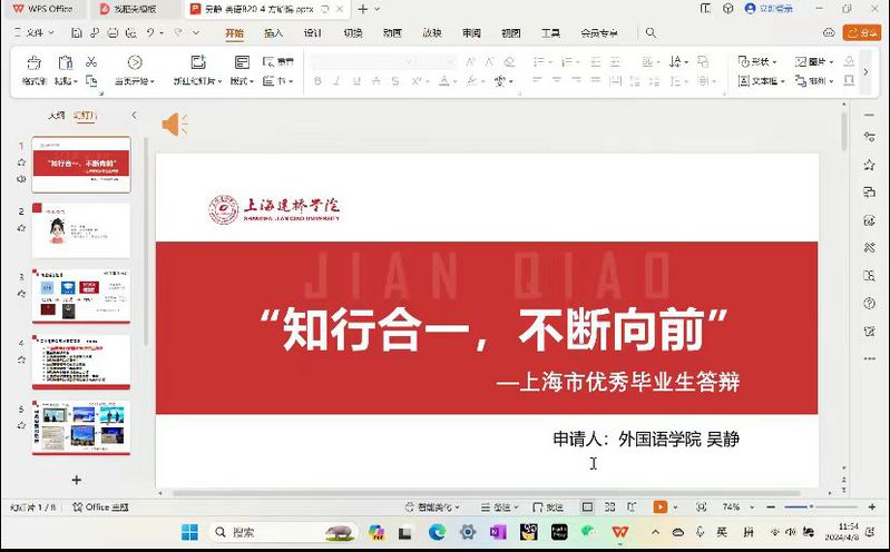 优秀毕业生是对德智体美劳全面发展、表现突出的学生给予的表彰和奖励。经过个人申报、辅导员推荐、学院资格审核等环节,共有57名同学进入上海市优秀毕业生评审阶段。在答辩会上,他们以PPT的形式展示了在学习成绩、学科竞赛、社会实践、创新创业、学习生活带头作用等方面的突出表现,为我们展现了当代优秀大学生的风采。