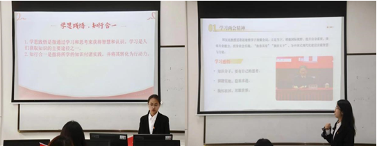各位学员展示了近期学习成果和实践经历,分享自身如何将“学”与“思”落实到“用”与“行”。发言中既有深入的理论探讨,也有具体的见解和实例。培训班学员赵逸凡表示,要强化理论武装,坚持知行合一,将所学所思运用于实处,学以致用,用以促学,为此她积极参加各类志愿服务,在班内、部门以及校外挺膺担当、发光发热;李柯欣同学借袁隆平院士、传播中华优秀传统文化的优秀博主以及刘邓大军强渡黄河的事例,深入诠释了对本次研讨主题的理解。她认为要重视学习、思考和应用之间的联系,只有将知识和信念转化为实际行动,才能实现知识的真正价值,推动个人和社会的进步。