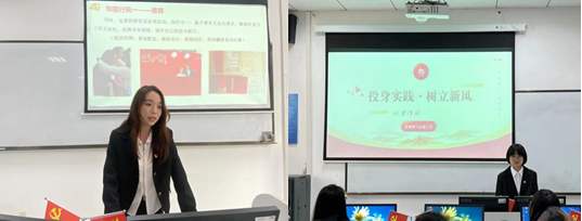 胡田田同学对主题中的“学”“思”“用”“知”“信”“行”逐字分析,清晰且深刻地分享了思考后的认识,她不仅分享了个人感悟,还结合自身实践,生动地阐述了如何将理论知识与实际行动相结合,以及如何在日常生活中展现入党积极分子的先锋模范作用;张玉同学从提升专业技能、学习理论知识以及参与志愿服务三个方面展开交流讨论,她表示,学习和实践密不可分,理论的求证依靠实践的开展,实践的推动需要理论的武装,她也在学习和实践的过程中找寻到了未来前进的方向。