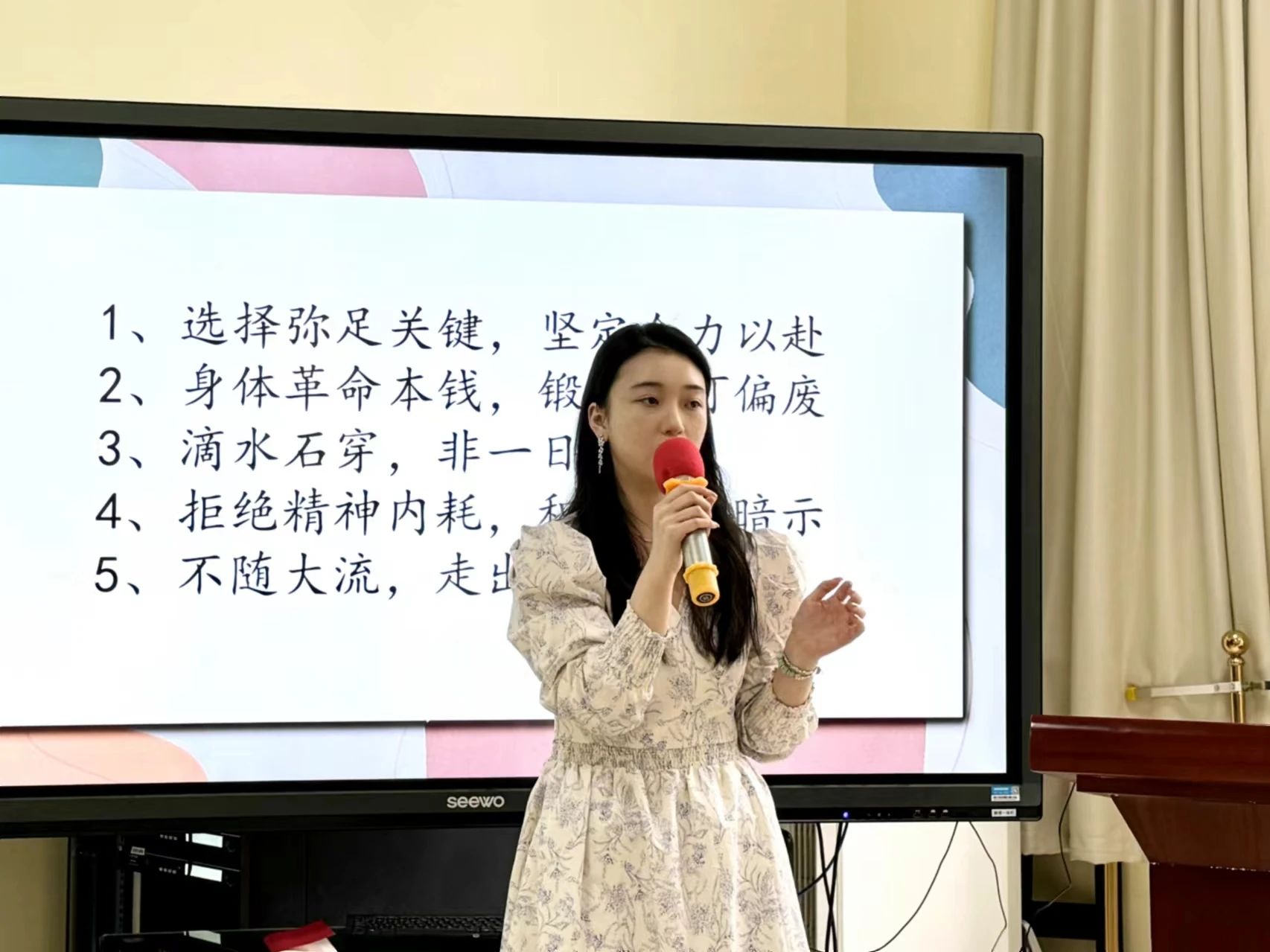 党委副书记伊莉对我院最近几年的考研取得的喜人成果做了分析,她强调过于追求名校而忽略自身实际能力的做法是考研路上的绊脚石,同学们要理性选择院校专业,立足自身实力,避免好高骛远,以平和的心态迎接挑战。