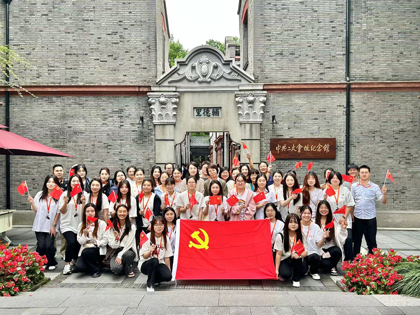 紧接着,师生党员们来到了中共二大会址纪念馆。馆内主要陈列有“中国共产党第二次全国代表大会历史展览”、“中国共产党党章陈列”等。在纪念馆大厅的党旗下,学院党委书记杜鹃带领师生党员及新发展党员高举右手重温入党誓词,感受革命精神力量,坚定政治理想信念。