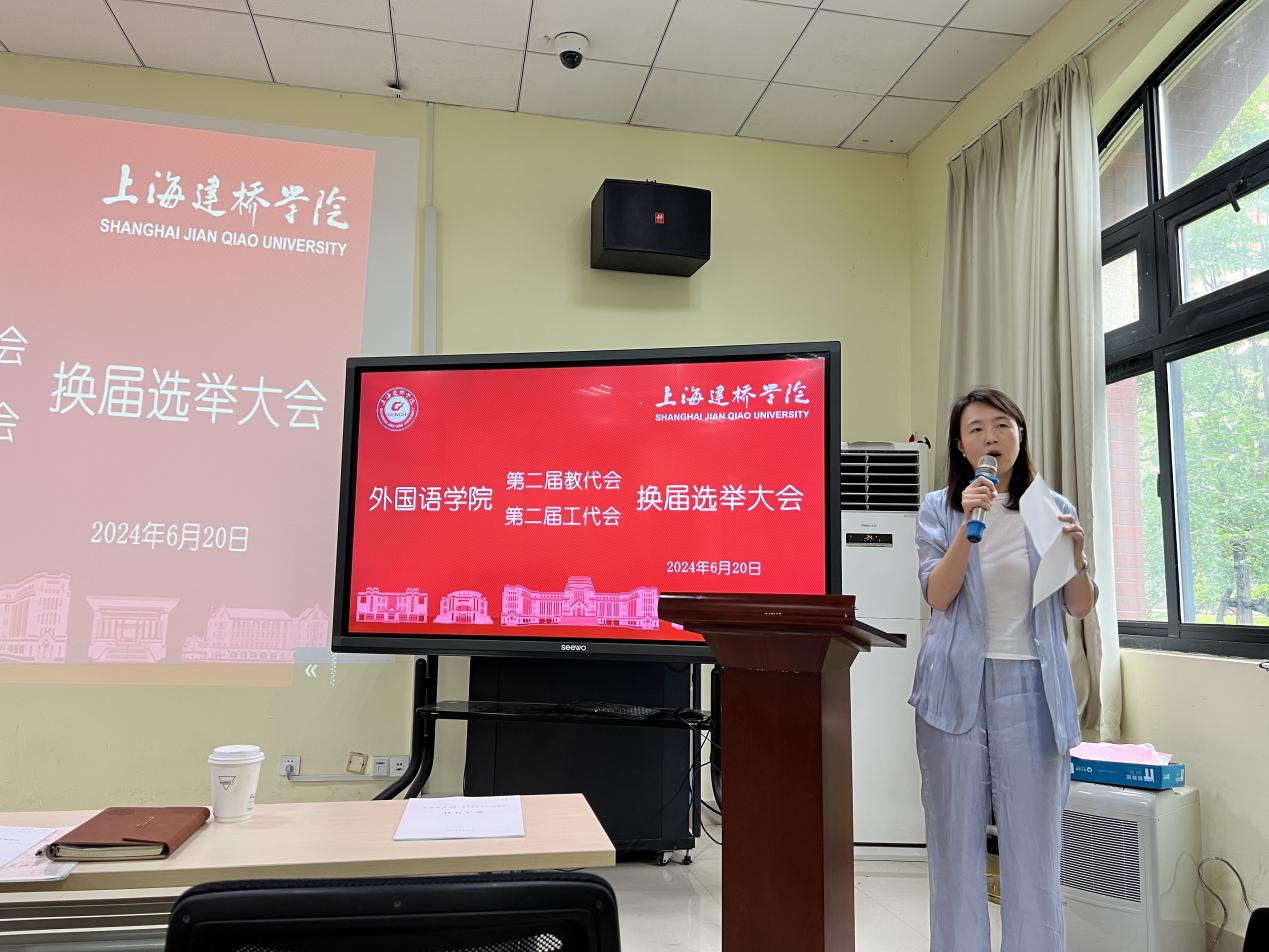 6月20日,外国语学院在学院129室召开了第二届教代会暨第二届工代会换届选举大会,学院全体教职工参会,换届选举大会由学院工会主席董显洋主持。