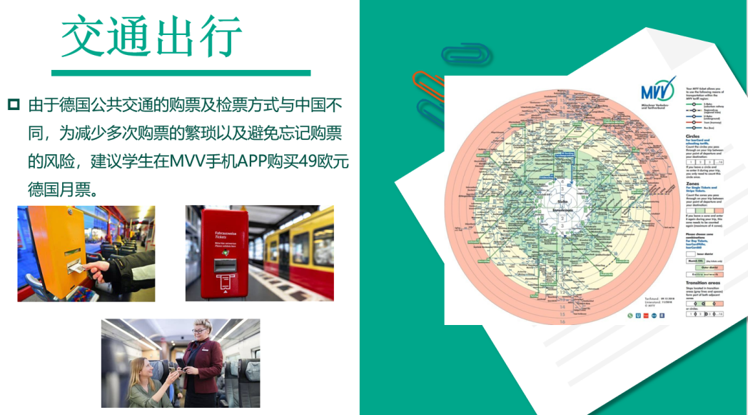 在交通出行方面,侯老师提醒学生要遵守德国的交通规则,注意交通安全,提倡学生乘坐公共交通工具出行,并指出德国公共交通的检票手续与中国不同,提醒学生们注意避免因忘记购票而面临惩罚。