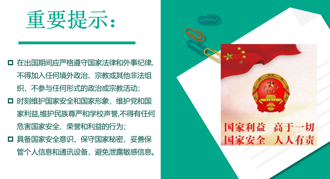 随后,侯老师对学院制定的《外国语学院夏令营学生告知书》进行了详细解读,特别强调了关于国家安全的重要提示。她提醒学生们在出国期间应严格遵守国家法律和外事纪律,维护国家安全和国家形象,维护党和国家利益。侯健慧老师凭借其在慕尼黑丰富的生活体验,以生动的实例向学生们传授了如何在日常行为中谨慎行事、以避免无意中损害国家利益的实用建议。