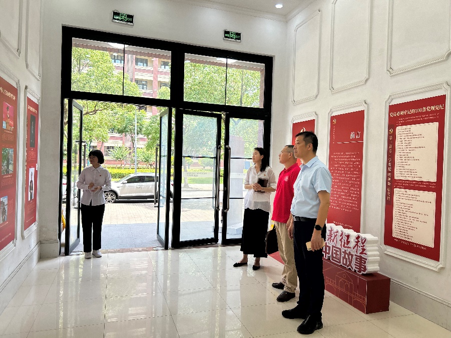 校人事组织处处长张宁、校人事组织处副处长黄晓星、校党委专职组织员陈静、外国语学院党委书记杜鹃、党委副书记伊莉、党委组织委员刘沛雨、党委宣传委员朱心怡参加此次党员活动室验收工作。