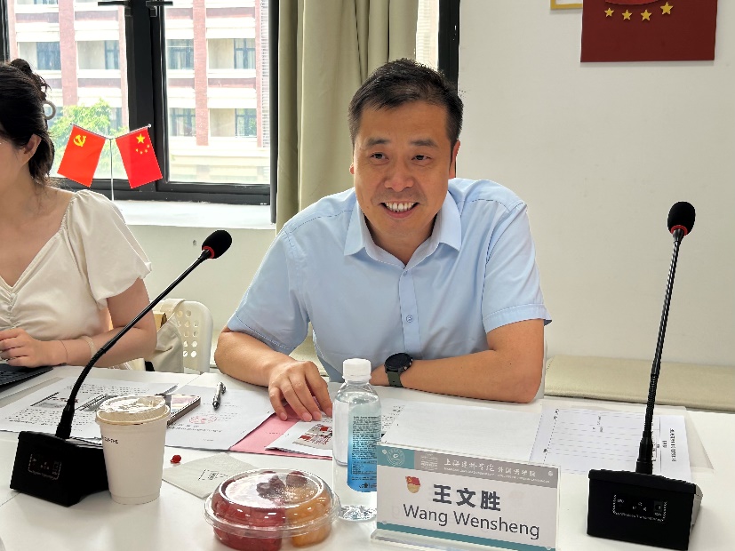 在第二项议程中,专家领导们来到外国语学院303党员活动室。验收会议上,校人事组织处副处长黄晓星首先向此次验收专家团队一行的到来表示热烈的欢迎和衷心感谢,并向各位专家与领导深入介绍了学校当前党员活动室的建设情况。
