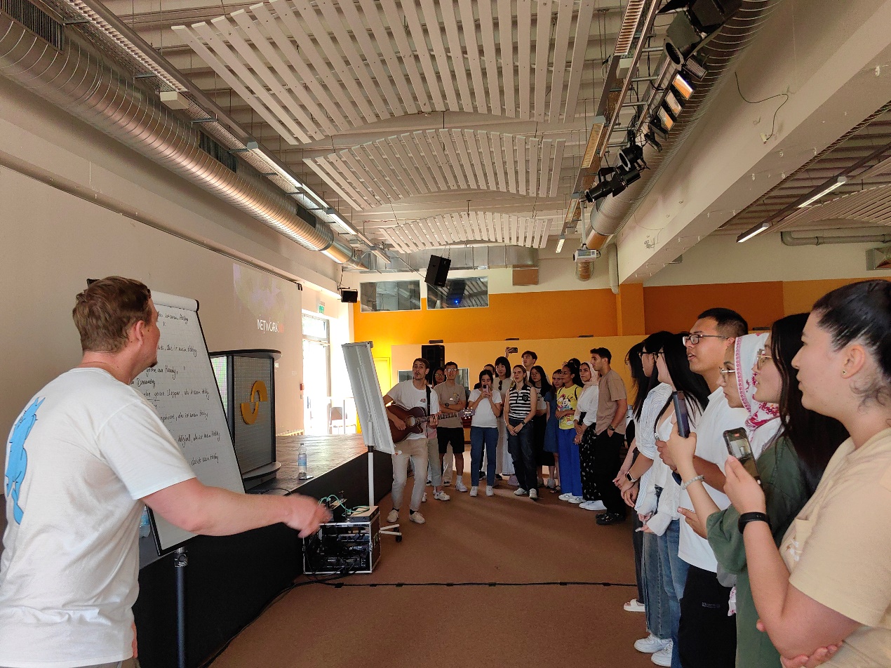 夏令营期间,学校特别安排了一场与慕尼黑当地乐队合作的互动工作坊,成为了此次活动的一大亮点。这场工作坊不仅是语言学习的延伸,更是一次深入探索德国文化的旅程。学生们在乐队艺术家的指导下,亲自参与到德语歌曲的创作与演绎中。这一过程不仅为他们提供了一个在轻松愉悦的氛围中学习新词汇和表达方式的机会,更让他们在旋律与节奏中感受到了德国音乐文化的独特韵味。通过这种跨文化的创意实践,学生们的语言学习兴趣得到了极大的激发,并且增强了他们对音乐艺术的理解与欣赏。