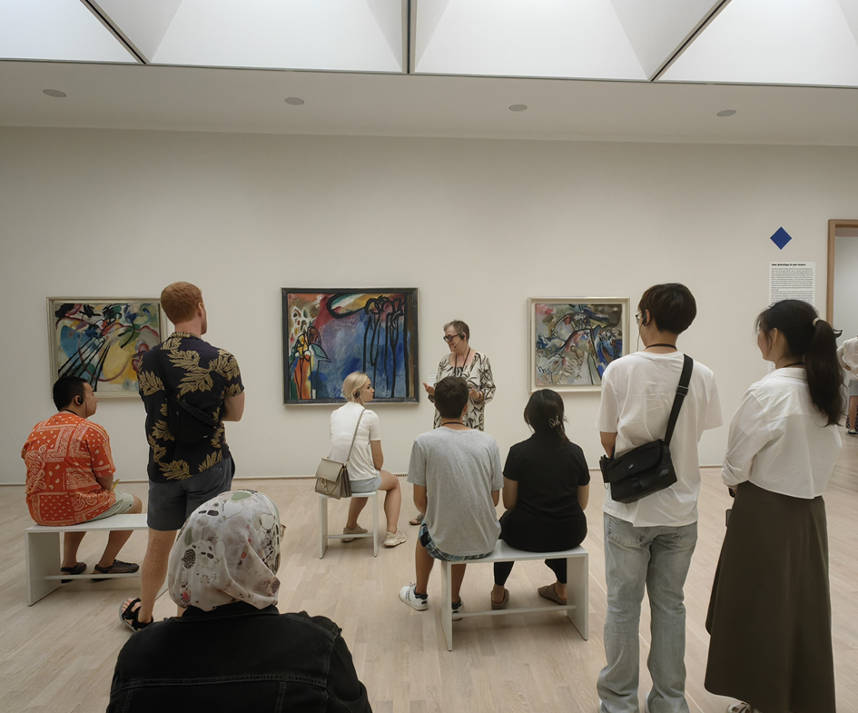 在慕尼黑老绘画陈列馆,学生们沉浸在从文艺复兴到现代的艺术发展历程中。在专业讲解的带领下,学生们欣赏了了伦勃朗、鲁本斯、梵高、莫奈等大师的经典之作,每一幅画作都是对一个时代精神的深刻诠释。这些艺术杰作不仅让学生们领略了艺术的细腻与力量,更在他们心中播下了对艺术史深入探索的种子。随后的伦巴赫美术馆之旅,为学生们的文化遗产探索增添了现代艺术的维度。这里展示的德国和欧洲现代艺术作品,让学生们得以近距离体验艺术的创新与活力,进一步点燃了他们对现代艺术的热情与思考。