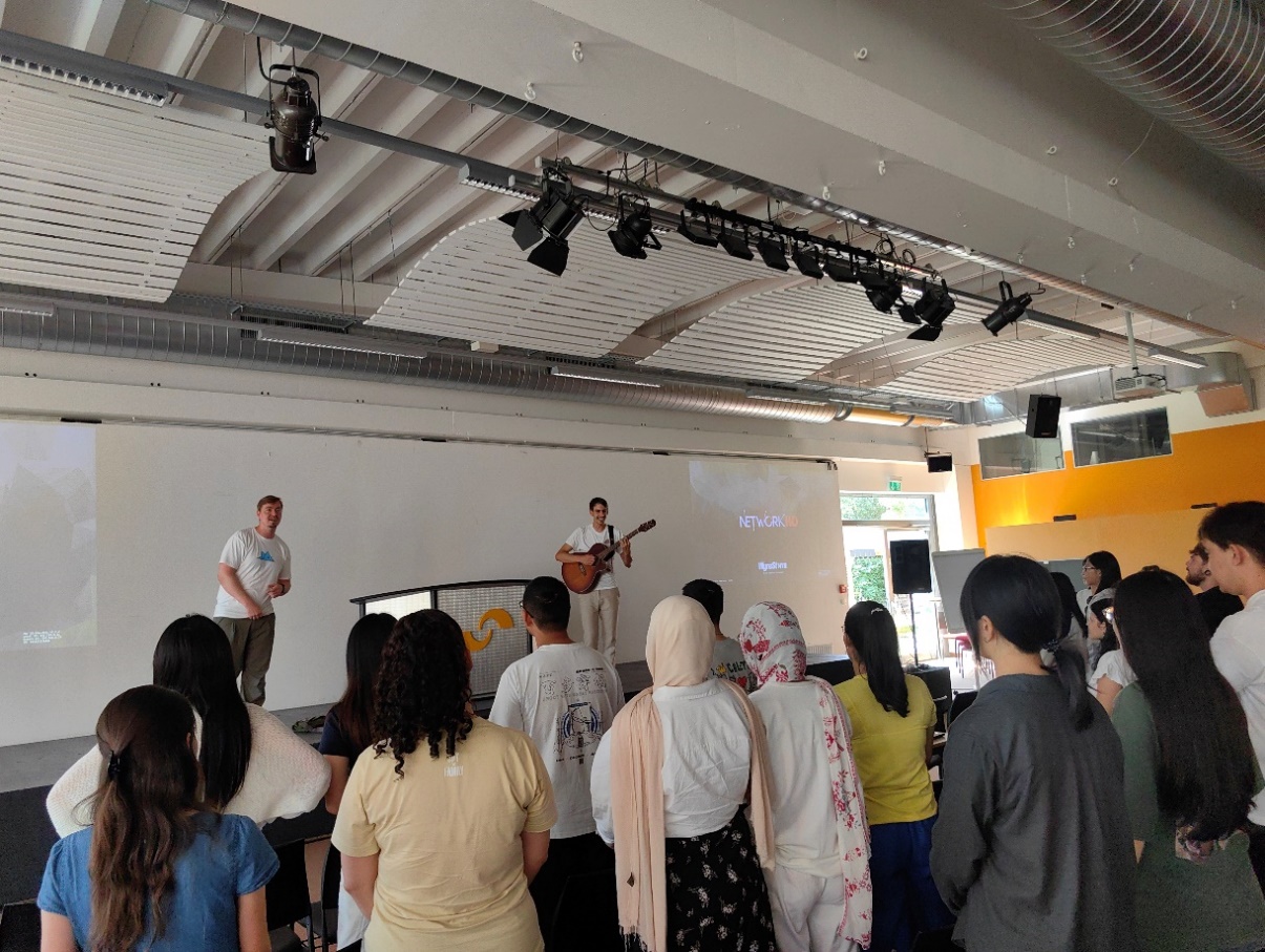 夏令营期间,学校特别安排了一场与慕尼黑当地乐队合作的互动工作坊,成为了此次活动的一大亮点。这场工作坊不仅是语言学习的延伸,更是一次深入探索德国文化的旅程。学生们在乐队艺术家的指导下,亲自参与到德语歌曲的创作与演绎中。这一过程不仅为他们提供了一个在轻松愉悦的氛围中学习新词汇和表达方式的机会,更让他们在旋律与节奏中感受到了德国音乐文化的独特韵味。通过这种跨文化的创意实践,学生们的语言学习兴趣得到了极大的激发,并且增强了他们对音乐艺术的理解与欣赏。