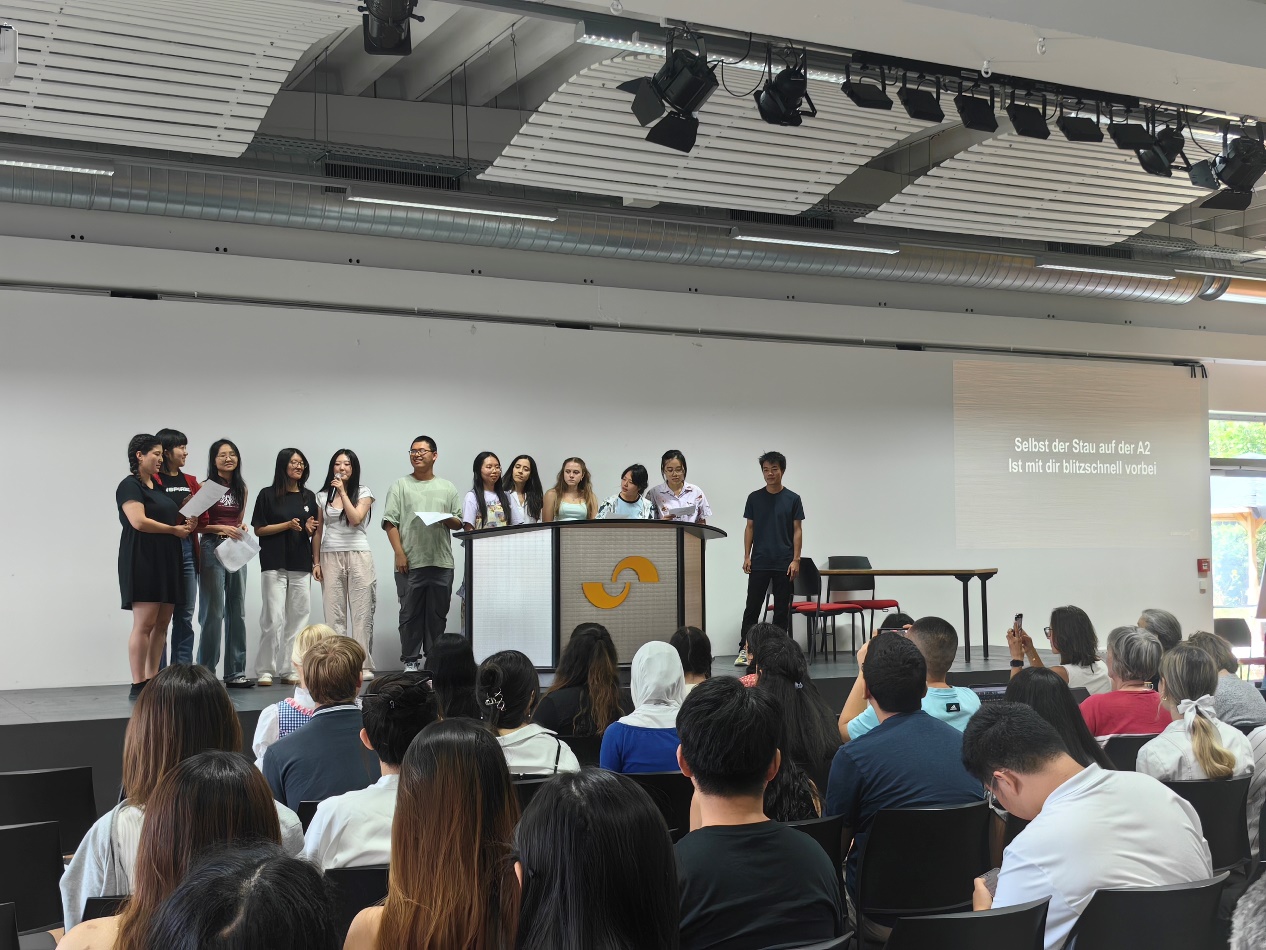 夏令营的每天上午,学生们沉浸在由资深教师团队精心设计的德语课程中。这些课程旨在巩固学生的语言基础,全面覆盖了听、说、读、写四个关键领域,确保学生在德语学习的每一个维度都能得到均衡的锻炼和提升。通过与教师的积极互动以及形式多样的小组活动,学生们不仅掌握了德语的基础语法和日常用语,更重要的是,他们学会了如何将这些语言知识灵活地运用到实际生活场景中。学生们在课堂上不再是被动的知识接收者,而是通过主动参与和实践,成为了知识的探索者和应用者。课余时间,学生们与来自世界各地、拥有不同文化背景的同伴进行交流;在超市购物、在餐厅点餐、在车站购票……这些真实的生活场景成为了学生们大胆运用课堂所学德语知识的舞台。通过这种全方位的沉浸式学习,学生们不仅提高了语言能力,更在跨文化交流中培养了必要的沟通技巧和国际视野。