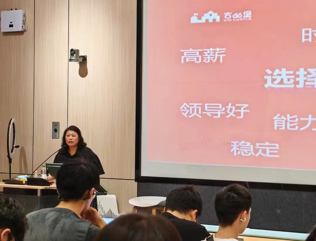 宣讲会伊始,吉的堡教育少儿教学课专案经理卢希翔 ,从吉的堡教育集团的发展史说起,为与会同学讲述了企业优势、培训机制、实习期待遇、转正后待遇等,在同类教育机构中极具竞争力。