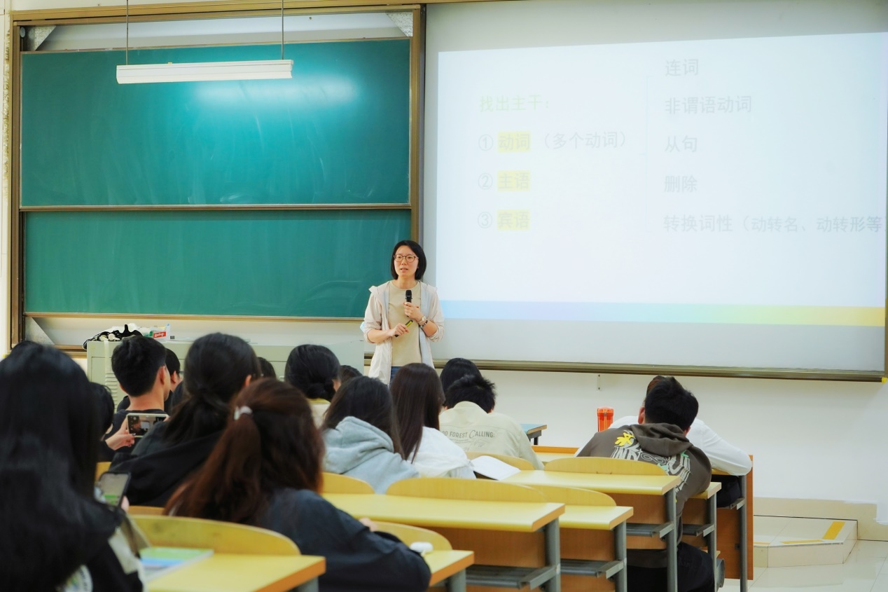 接着,大学英语教师党支部宣传委员张晶晶老师和组织委员徐辰老师充分发挥党员教师的先锋模范作用,精心设计培训内容,结合自身教学经验和专业知识,分别就大学英语四级中的听力、词汇和翻译等模块,结合丰富又典型的真题,从英语学习方法、教学技巧、沟通能力等多个方面进行了深入讲解。两位老师通过生动的案例和互动的方式,以高度的责任感和敬业精神,耐心指导“小先生”们,为他们答疑解惑,传授教学经验,激发了“小先生”们的学习热情和参与度。