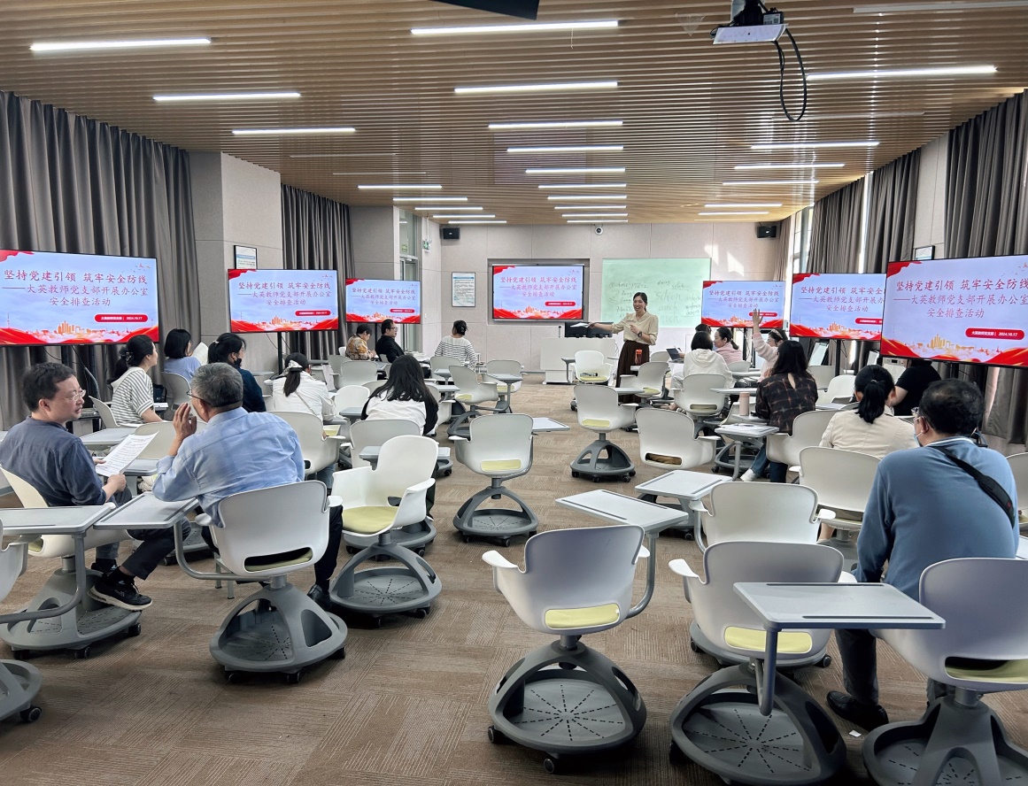 活动伊始,支部副书记傅荣琳先组织党员教师们在外国语学院410开展办公室安全排查工作部署会。傅荣琳强调,通过全面、细致的安全排查,及时发现并消除办公室内存在的安全隐患,确保办公室的安全稳定,为教学工作的顺利开展提供有力保障。紧接着,在党支部的精心组织下,党员教师们根据《坚持党建引领 筑牢安全防线——大英教师党支部开展办公室安全排查活动清单》迅速行动起来,对大英部教师各个办公室进行了全面细致的安全排查。他们认真检查电器设备是否正常运行,电线是否存在老化、破损等安全隐患;同时,仔细查看办公桌椅、文件柜等设施是否牢固,有无损坏情况;此外,对消防器材也进行了严格检查,确保在紧急情况下能够发挥应有的作用。