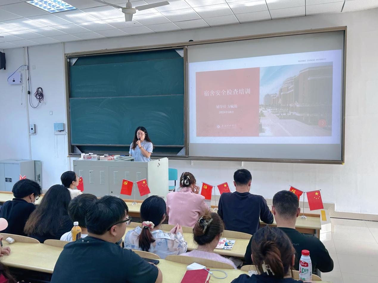 宿舍是学生日常生活和学习的重要场所,安全巡查可以及时发现并排除潜在的安全隐患。根据学院法治和安全教育宣传月工作部署,我院学工团队将带领全体学生骨干进入社区开展安全巡查。为进一步落实要求,学院负责社区工作辅导员方毓锦对学生骨干进行了安全检查培训,从学生社区安全检查工作规范、学校安全检查规章制度、安全违纪实例及处理方法等方面深入探讨校园内常见的安全隐患及其预防措施。她强调,学生骨干参与学院的安全巡查工作不仅有助于维护校园的安全,还可以展现作为学生骨干的先锋模范作用和担当,在座学生应扎实协助推进安全巡查工作。
