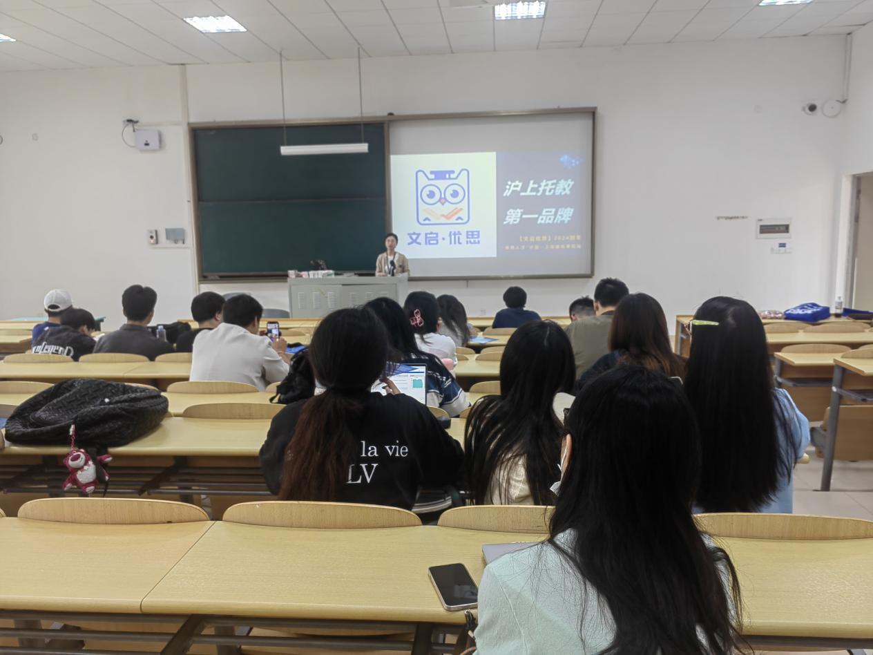 文启优思教育集团人力资源经理李倩老师详细介绍了集团的具体情况,2017年3月,文启优思由80后上海交大精英团队创立,专注为精英家庭提供小学生周中课后高端托教服务,主要围绕课后作业辅导、测评分析、智能学习、习惯素养等业务模块塑造私人管家式托教服务。目前,文启优思已在上海线下开设40家连锁自营校区,续课率超过 90%。李倩经理还就公司的组织构架、人力资源政策、企业文化、福利待遇、规章制度等方面向同学们做了简单介绍,并现场答疑解惑,真诚邀请同学们进入文启优思教育集团。