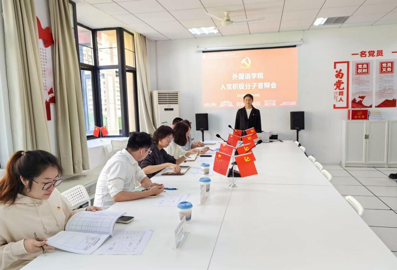 为进一步落实学院入党积极分子培养工作,提高党员发展质量,把好党员入口关,外国语学院于20241018日在外院303开展入党积极分子答辩会。学院党委书记杜鹃、党委副书记伊莉、党委专职组织员刘沛雨、学生支部书记、支委参加了本次答辩。本次答辩分为个人汇报和评委提问两个环节。